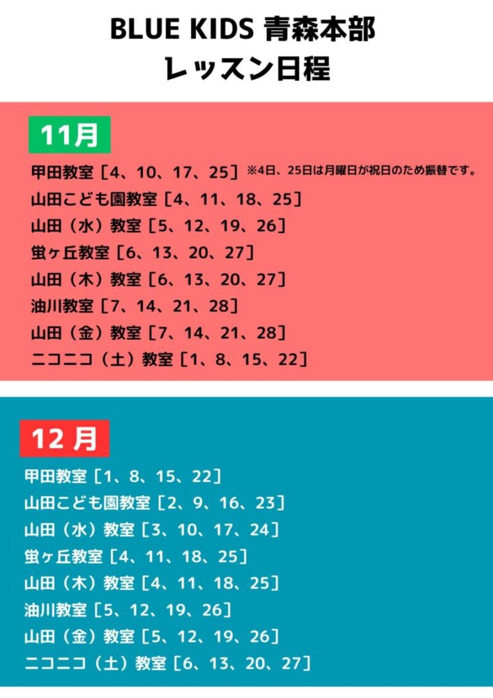 11、12月のレッスン予定【青森支部】